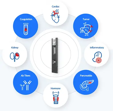 Con los analizadores Vcheck es posible realizar pruebas en el punto de atención de varios biomarcadores de enfermedades, antígenos virales de enfermedades infecciosas y títulos de anticuerpos.
